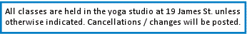All day and evening yoga classes booked by appointment only. 7 days a week.
